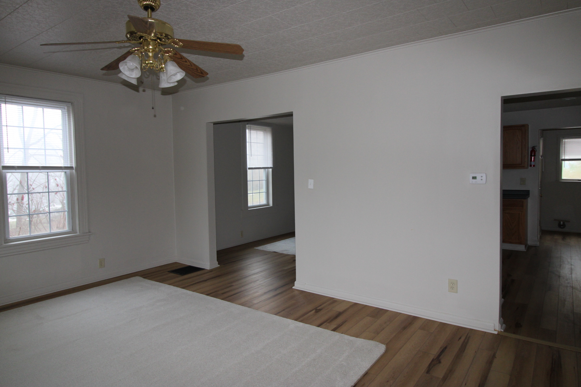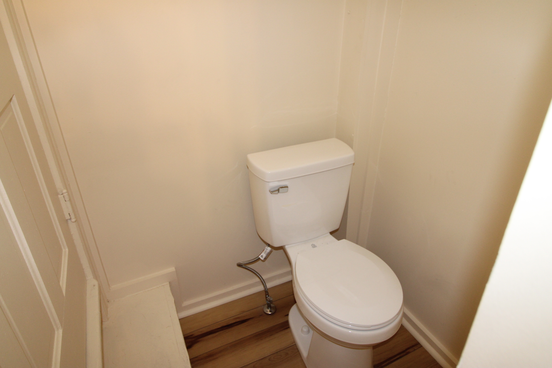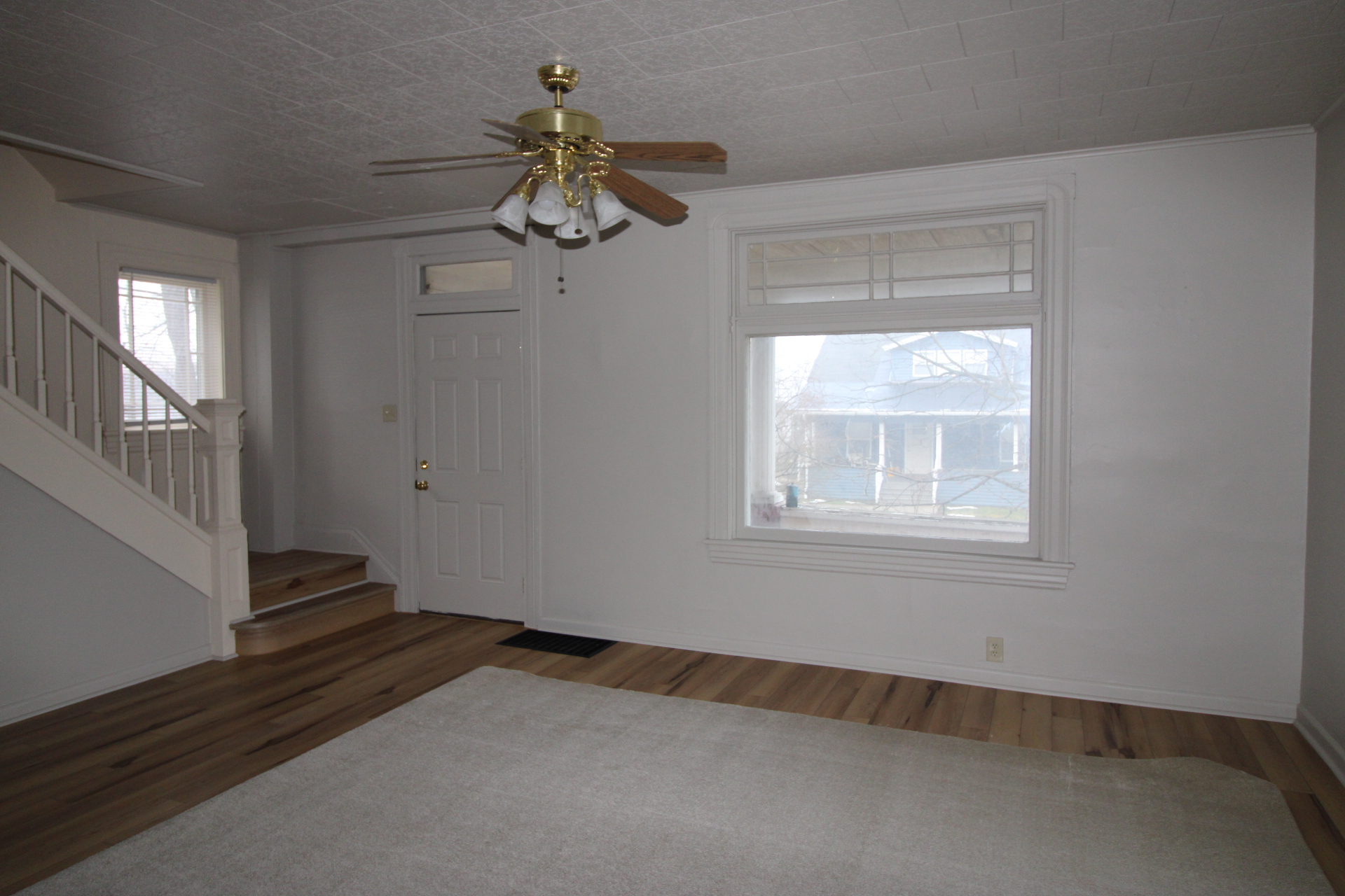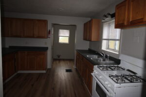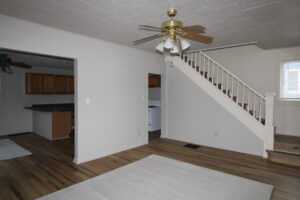 Three bedroom home with a kitchen, dining room and living room on the first floor. The second flood has the three bedrooms and a full bath. The house also has a full basement. The interior has been completely repainted and it has new flooring throughout. Laundry hook ups are just off the kitchen.