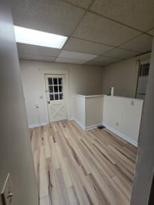 Two bedroom apartment with a full basement with a work bench for all those little projects. Back deck of the kitchen for barbeques or for a cool drink in the summertime. Very cozy and close to town, fishing and the ball fields. Off street parking at the front of the house and behind the house. Washer and dryer hook ups.